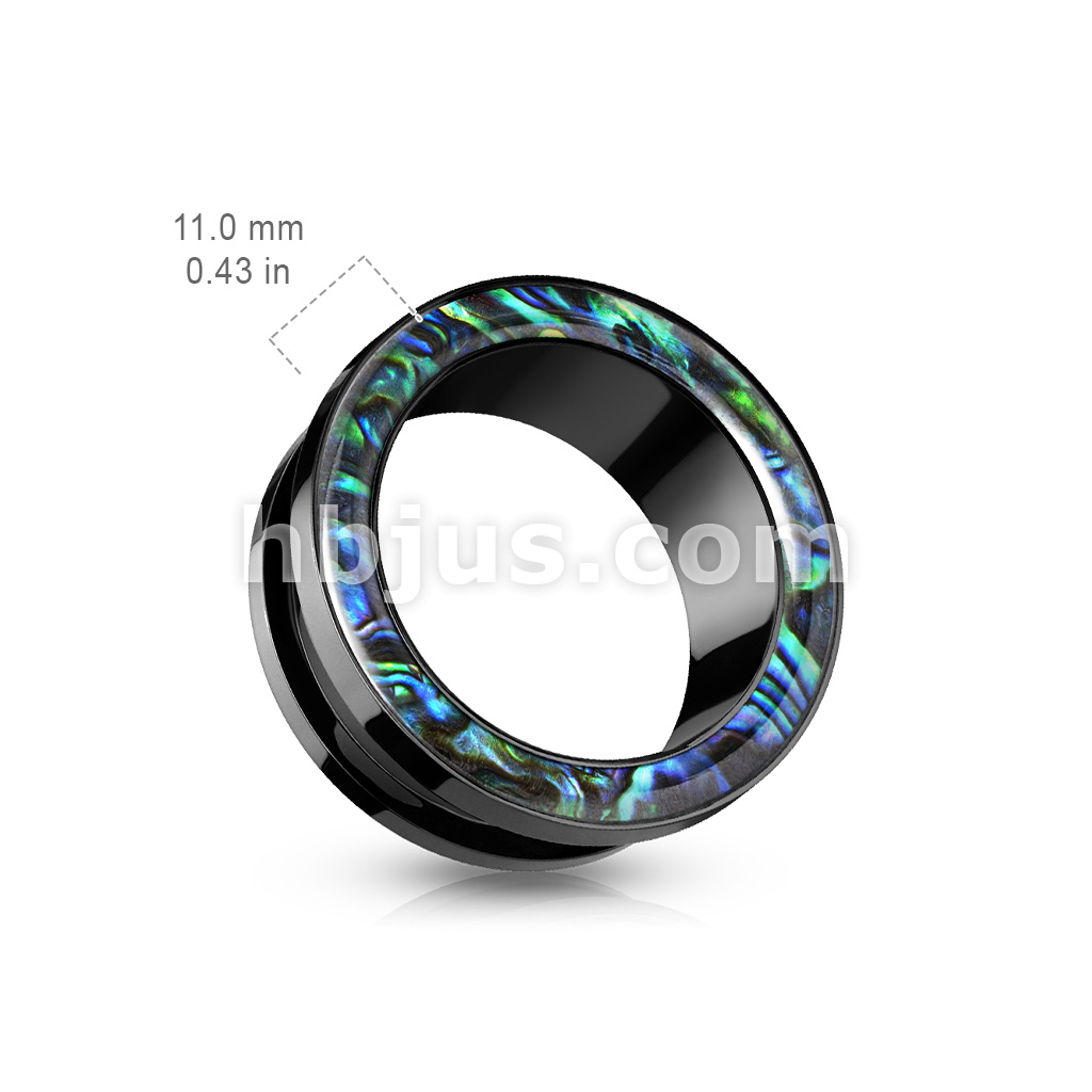Abalone Rimmed Black PVD over 316L Surgical Steel Screw Fit Tunnel