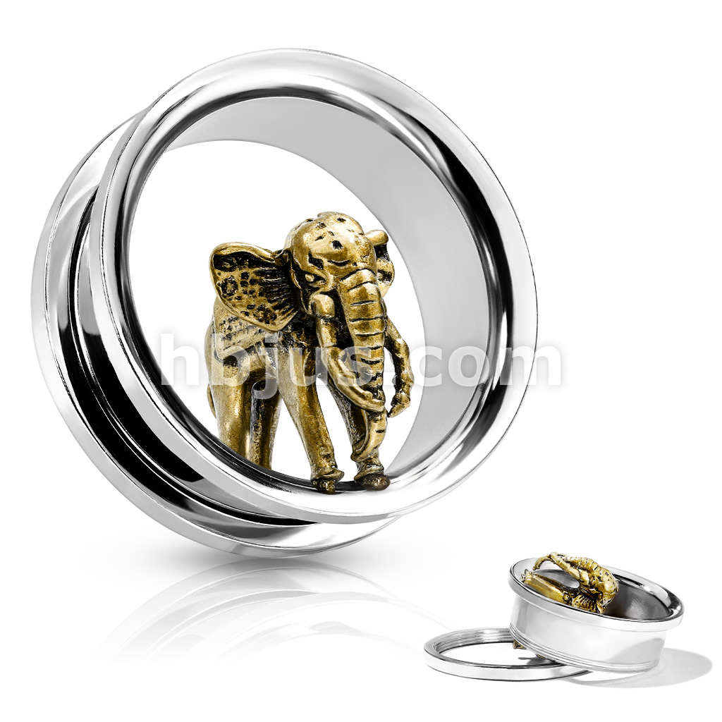 Gold Elephant in 316L Surgical Steel Screw Fit Flesh Tunnel Plug