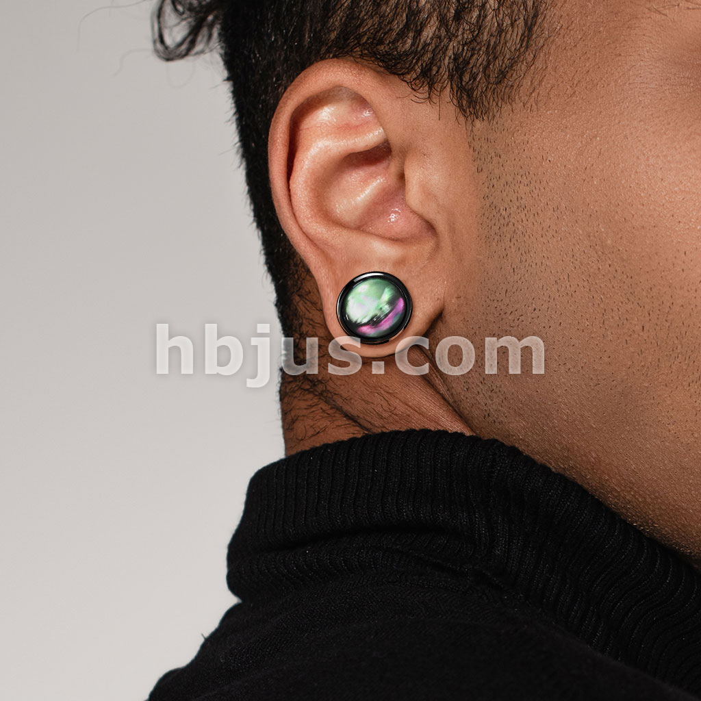 Multi Color Shell Black PVD 316L Surgical Steel Screw Fit Flesh Tunnel Plug