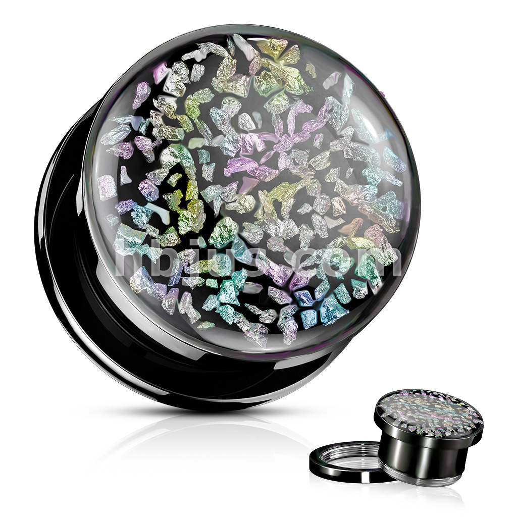 Rainbow Fossil Black PVD 316L Surgical Steel Screw Fit Tunnels