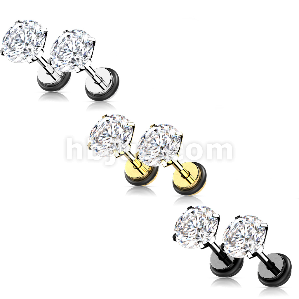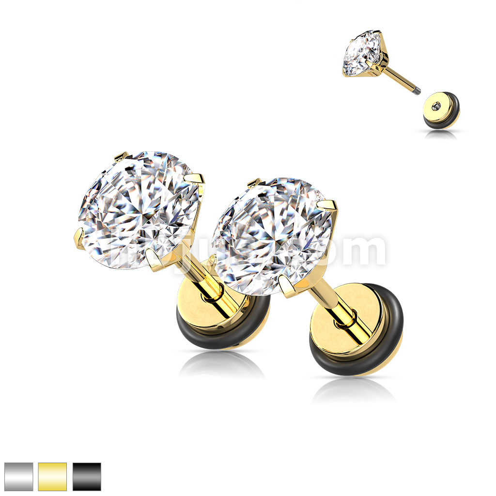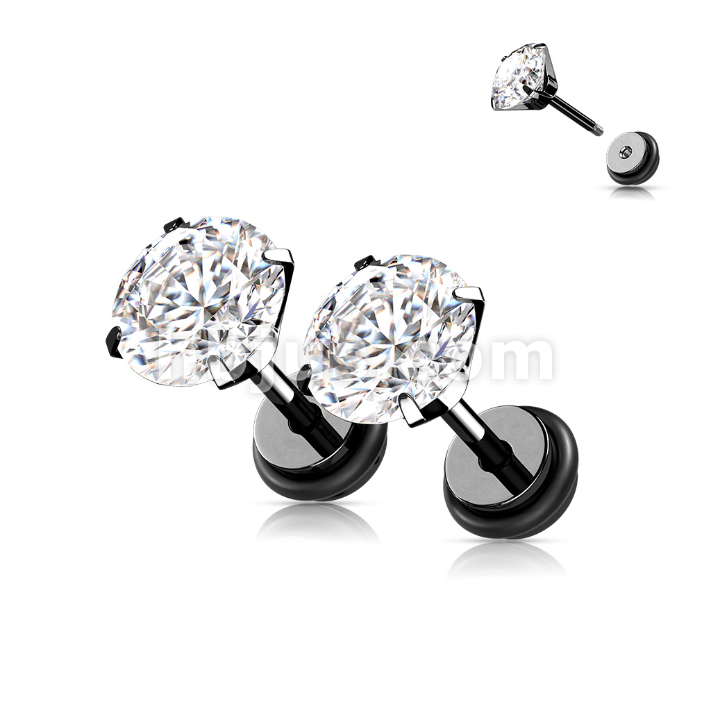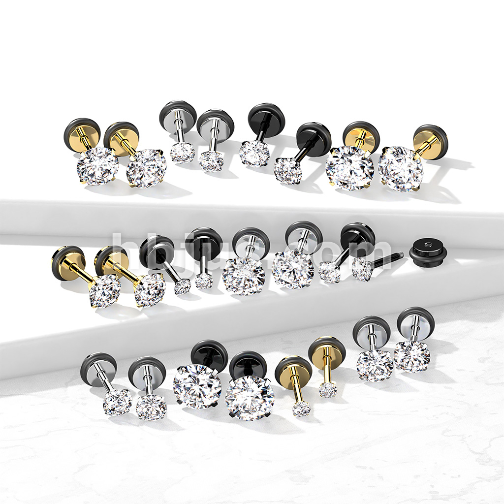 CZ Prong Set 16g 316L Surgical Steel Fake Plugs