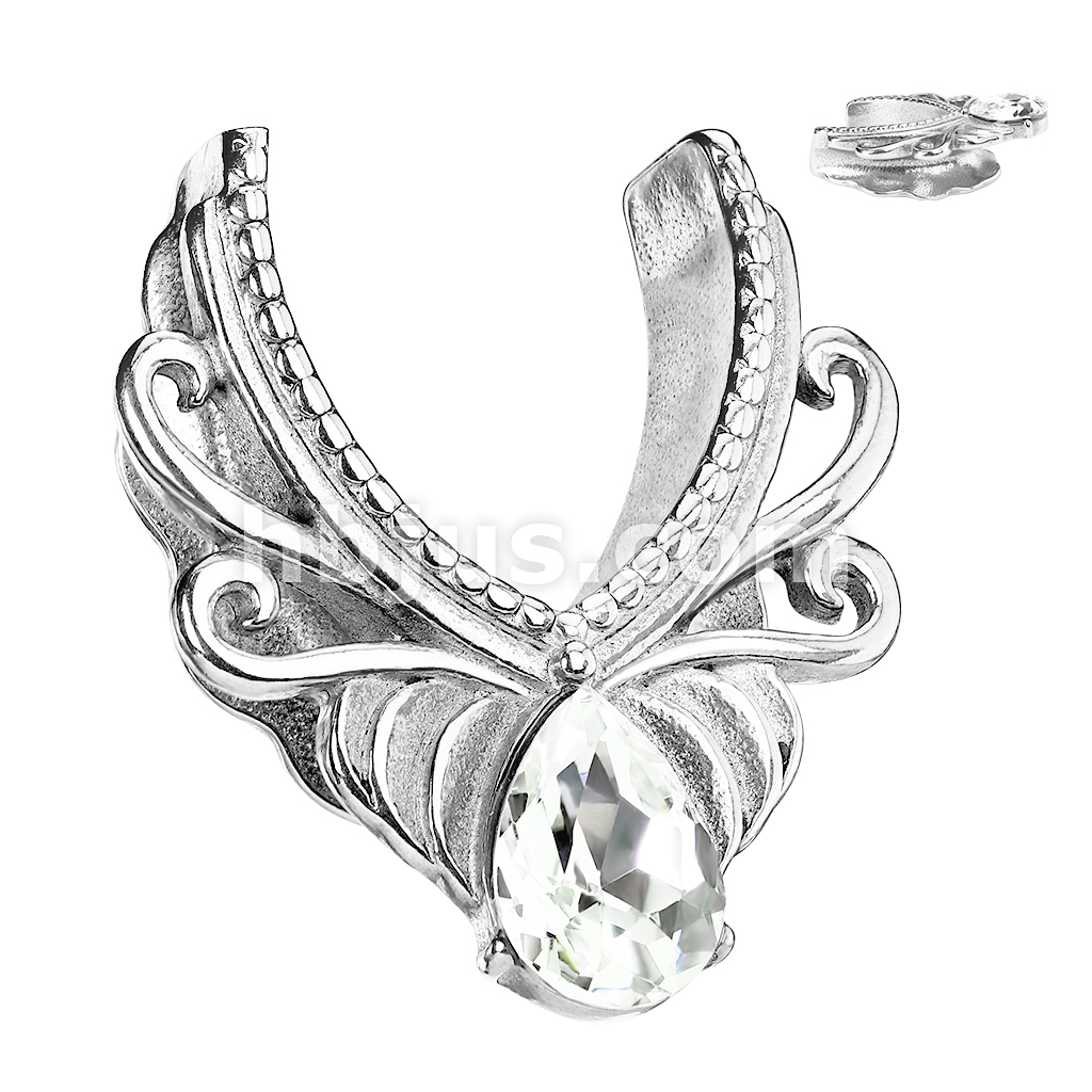 Floral Filigree V Shaped All 316L Surgical Steel Saddle Spreader with Teardrop Centered CZ