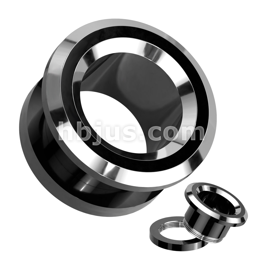 Black and Silver 2-Tone Rim PVD over 316L Surgical Steel Screw Fit Tunnel