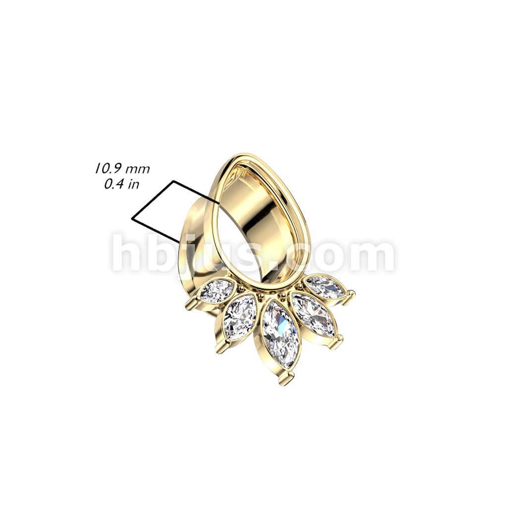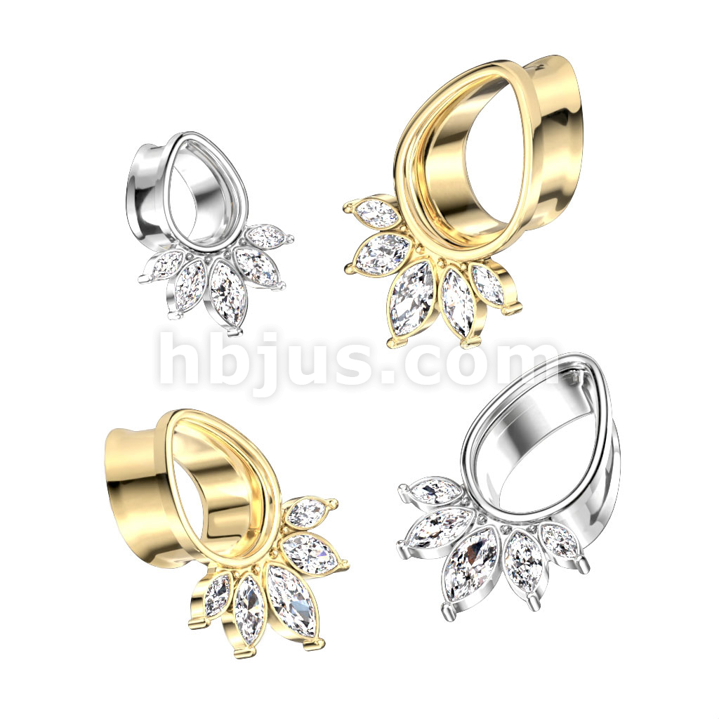 5 Marquise CZ Fan Tear Drop 316L Surgical Steel Double Flare Tunnel