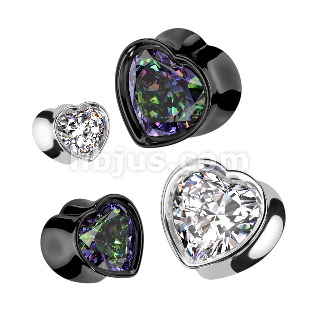 Double Flared Heart Tunnel With Heart CZ 316L Surgical Steel Plug