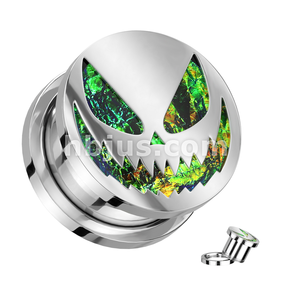 Green Opal Glitter Under Halloween Smile 316L Surgical Steel Screw Fit Tunnel