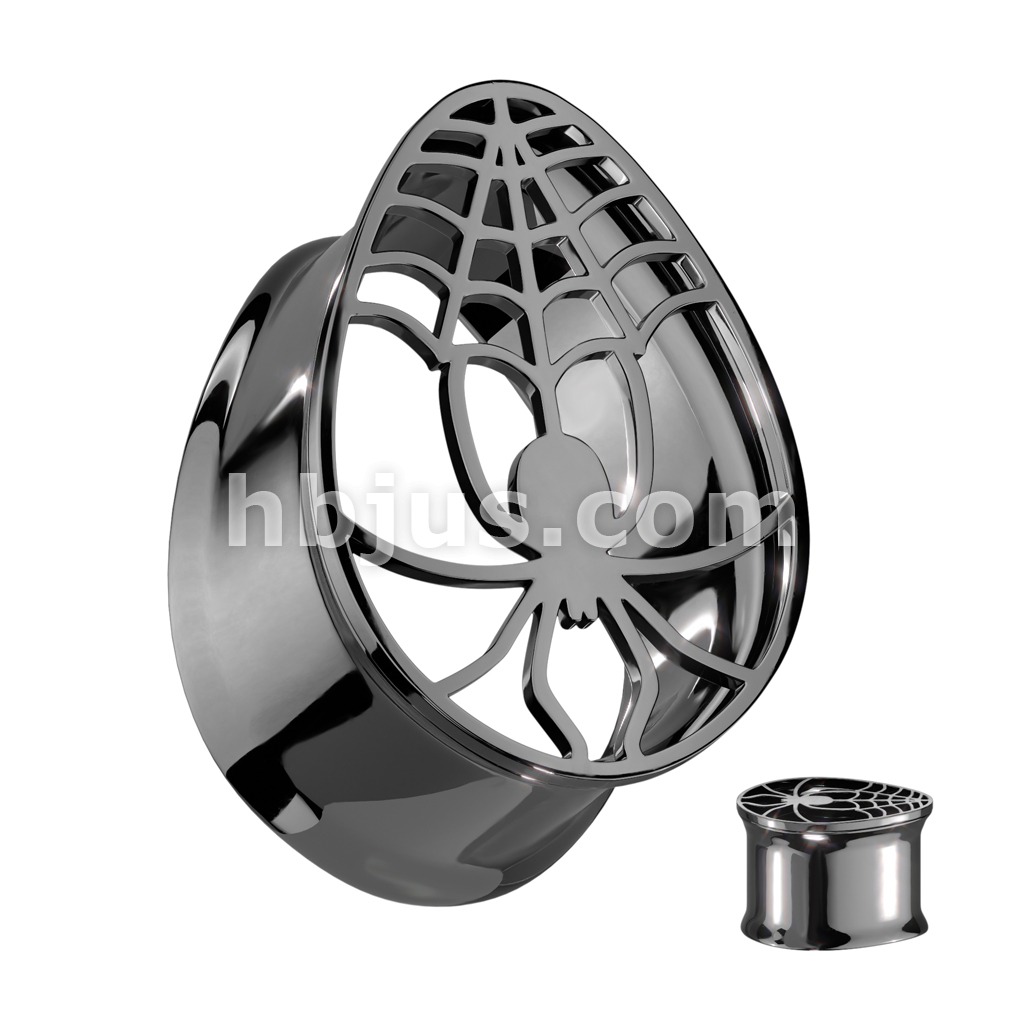 316L Surgical Steel Black PVD Tear Drop Double Flare Tunnel With Hollow Spider