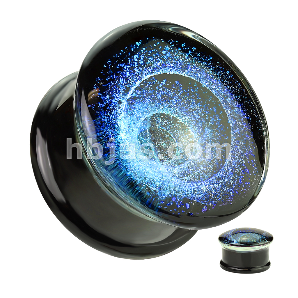 Blue Vortex Pyrex Glass Double Flare Plug