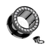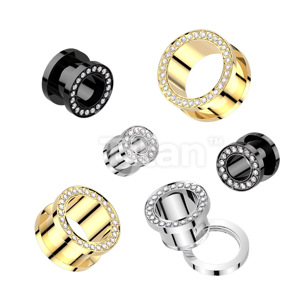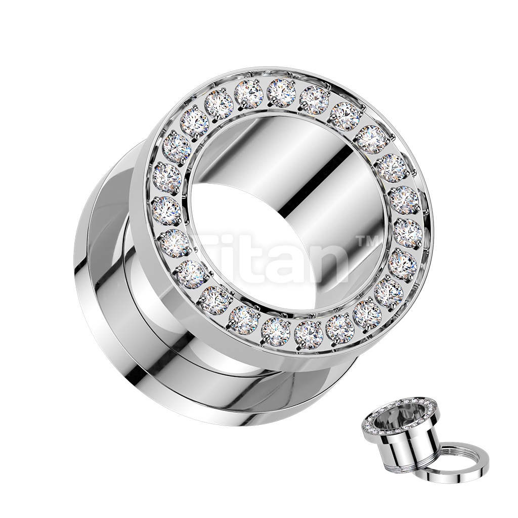 Titanium Double Flared Screw Fit Tunnel With CNC Set CZ Rim