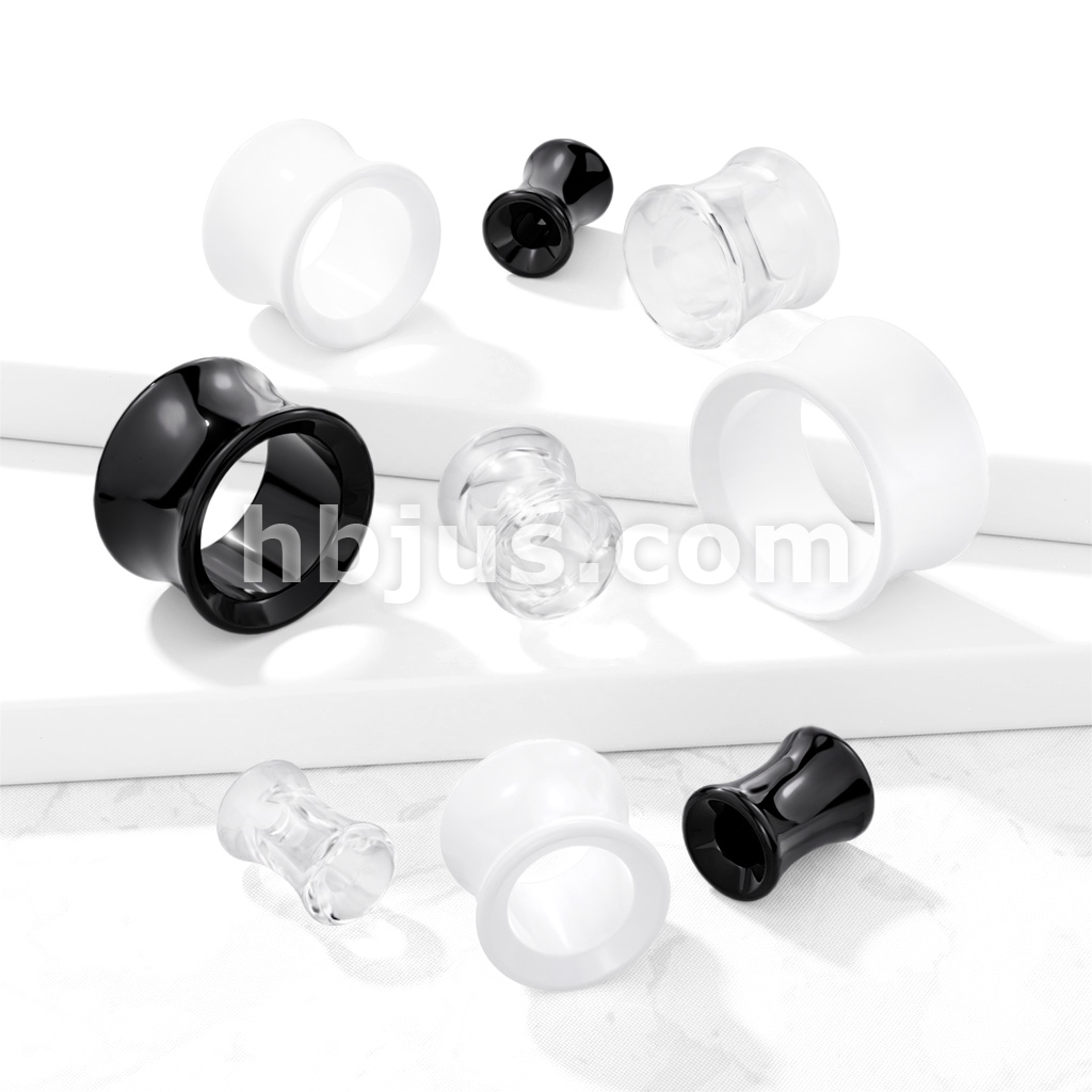 Clear and Black UV light Reactive Acrylic Double Flared Hollow Saddle Tunnels.