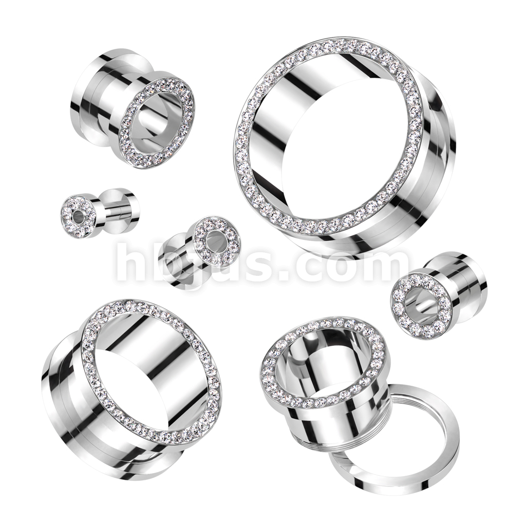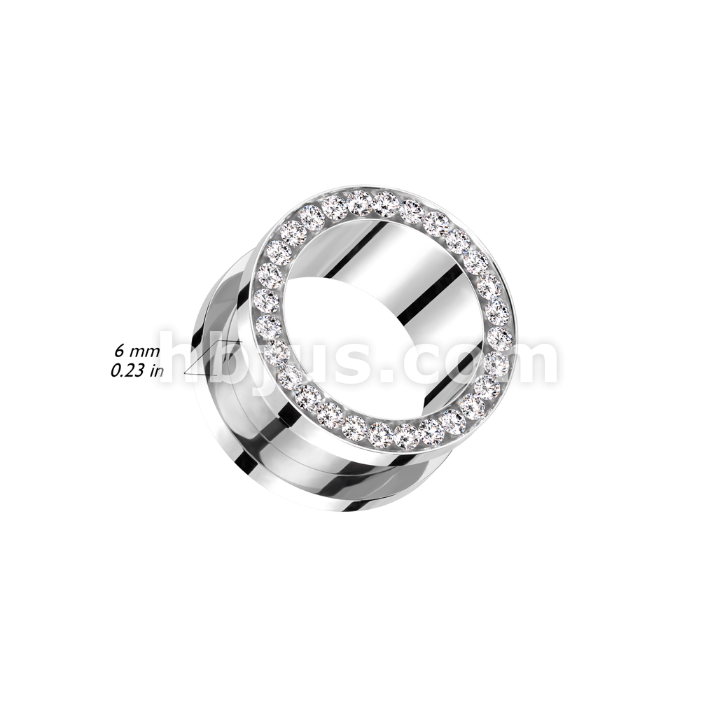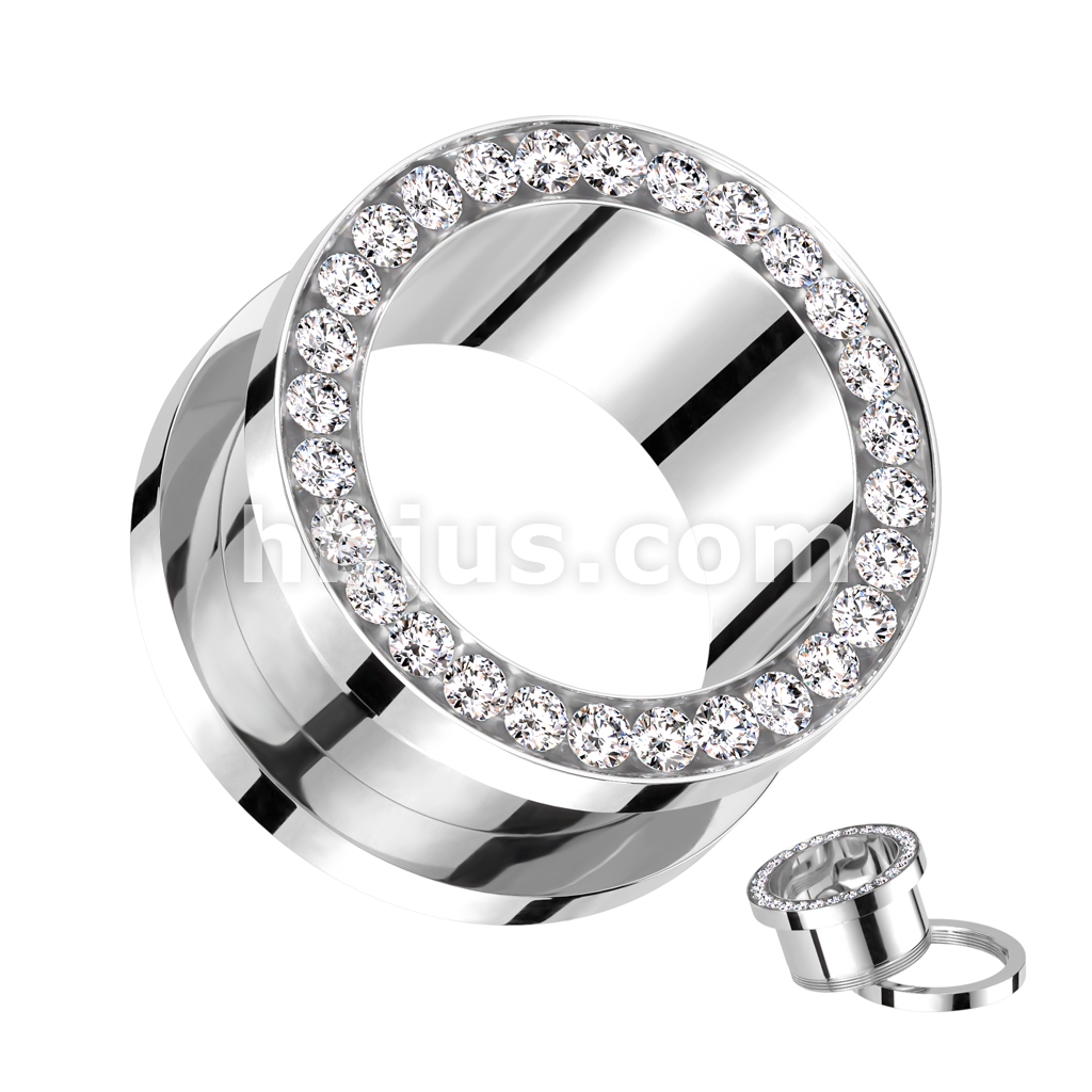 CZ Lined Rim 316L Surgical Steel Screw Fit Flesh Tunnel